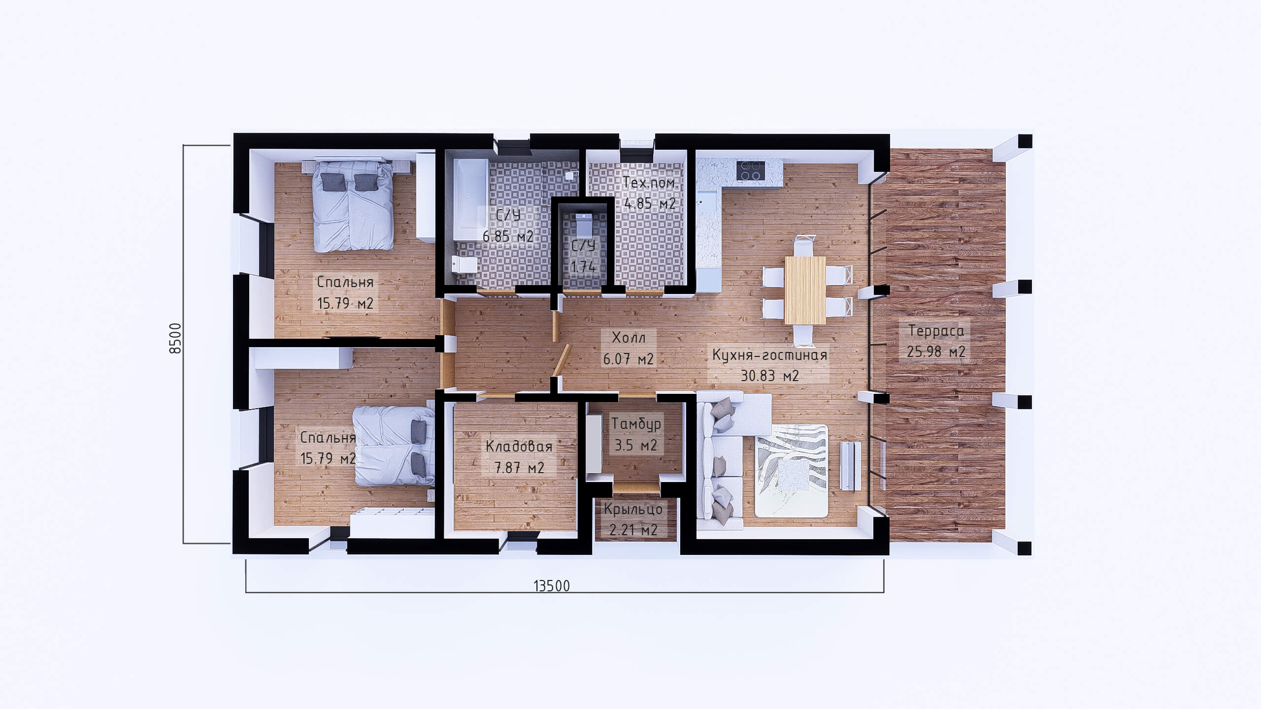Представляем проект «Проект Дома - 23-15-1» (Баня). Здание возводится по каркасной технологии с использованием материала «древесина камерной сушки». Габариты: 13,2 х 8,2 м, общая площадь — 130,9 м². В доме 1 этаж(а), количество спален: 2. Высота конька: 4 м. Отличный выбор для загородного строительства.