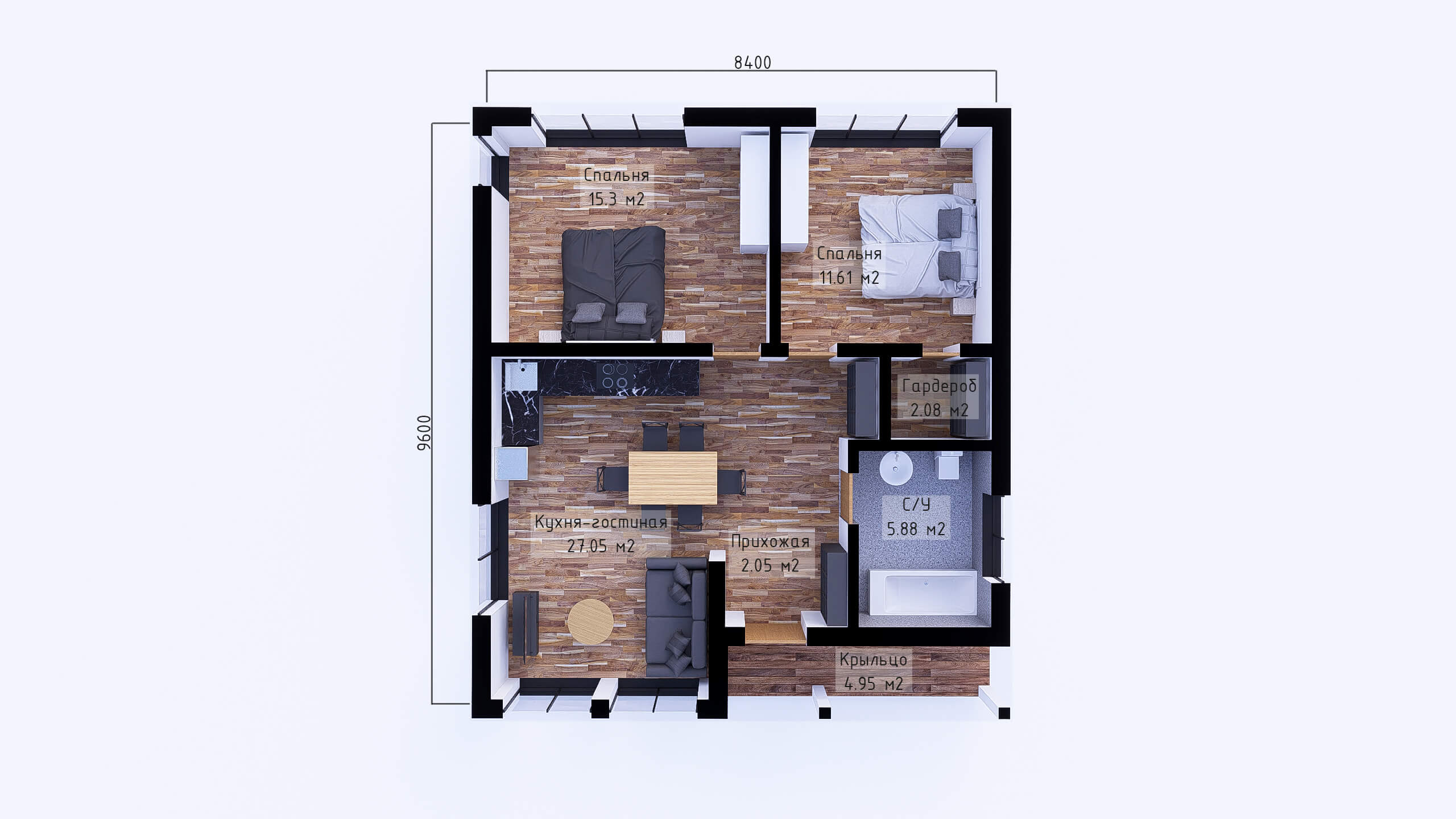 Габариты 9 х 7,05 м