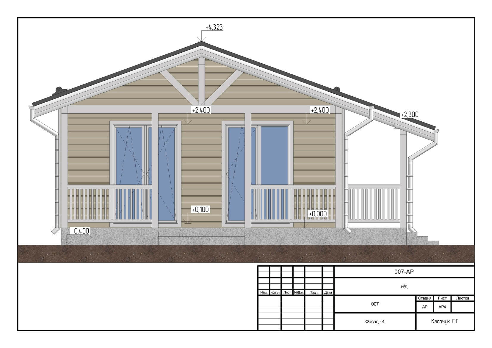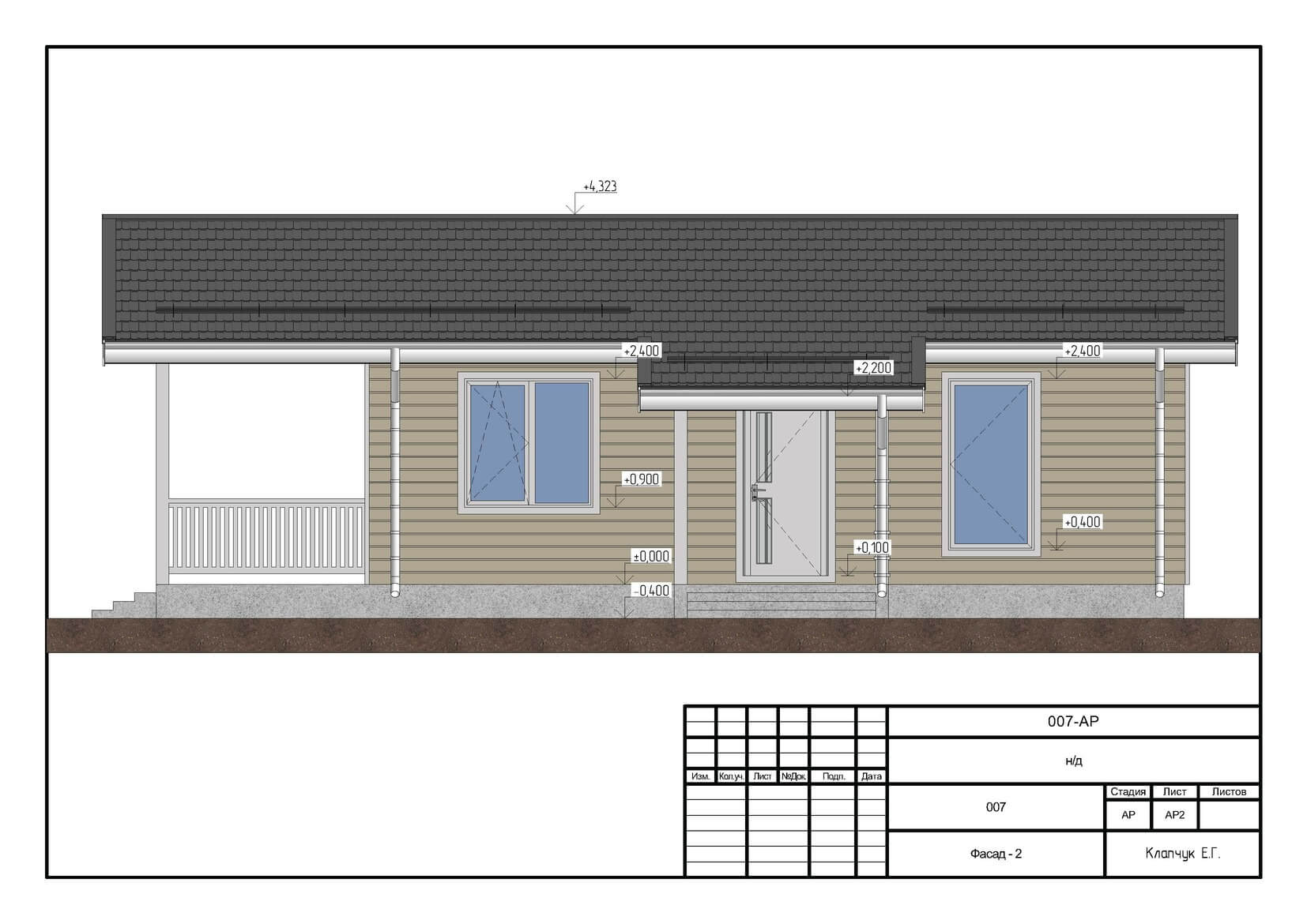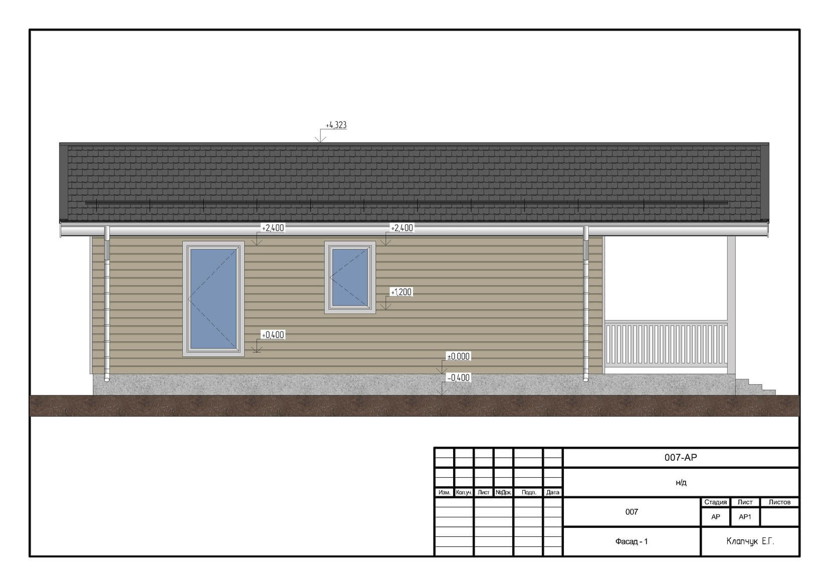 Наружная отделка – имитация бруса, хвоя сорт АВ с вентиляционным зазором + профнастил цвет “серый графит”